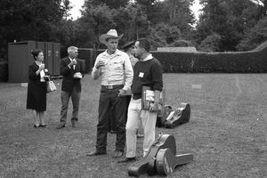 Glenn Ohrlin (wearing hat), Bruce Jackson (right, in dark sweater).